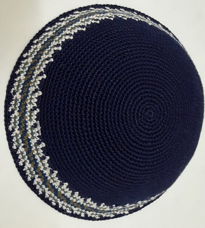 blue knitted kippah with rim 18cm