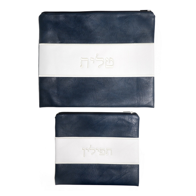 Beautiful vinyl set of tallit and tefillin bags in navy and white