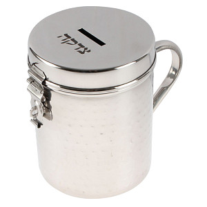 Elegant stainless steel hammered look tzedaka box. Big but lightweight.