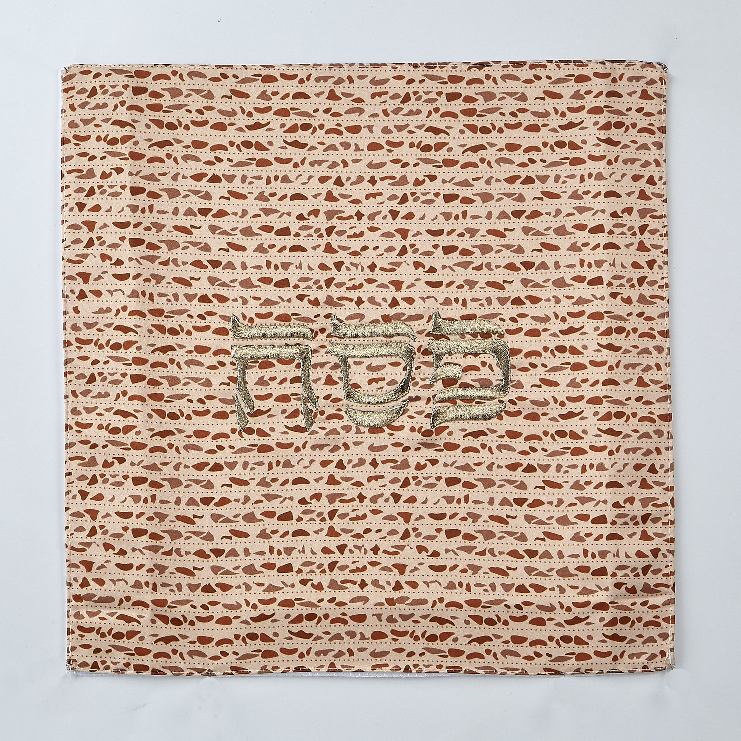Matzah is the centerpiece of the table on Seder night - so dress it up in Matzah style! Featuring realistic artwork of Matzah and the word "Passover" written in a modern Hebrew script, this thematic Matzah cover will enhance the tablescaping of the Seder table in true Passover spirit!