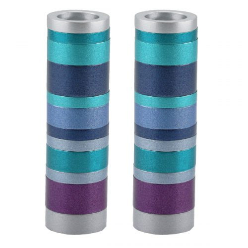 The candlesticks are made of different sized rings, which are made of aluminium and painted with Anodize colors.