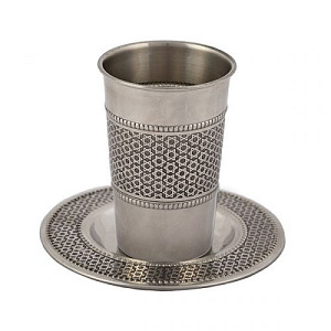 An elegant and modern kiddush cup with matching saucer. Will enhance your kiddush!